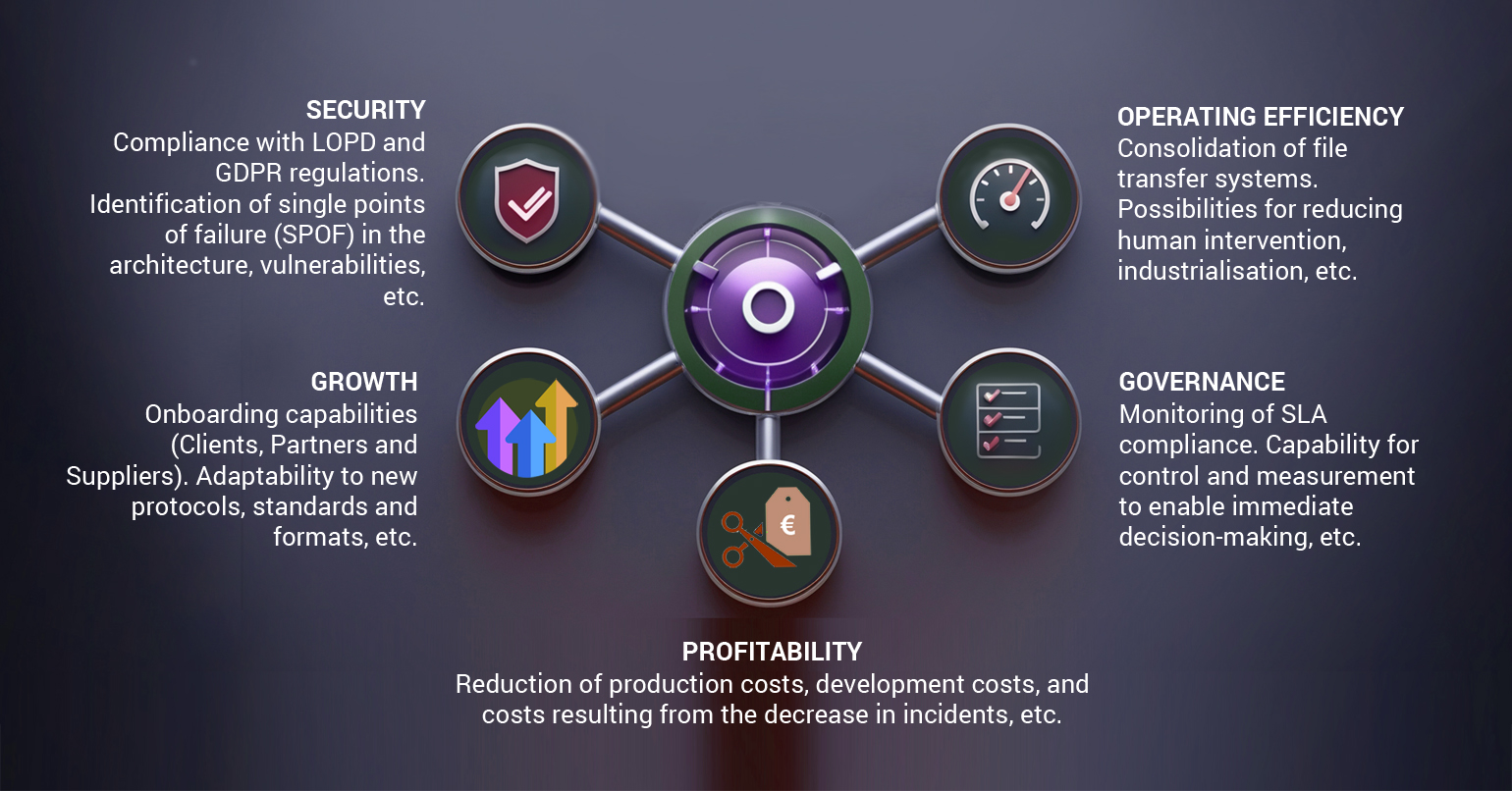 Similarly, monitoring processes through a centralised control panel allows you to encourage compliance with service level agreements, alerting you to transactions and events that fall outside the established limits. In this way, improving SLAs will improve the quality of service and reduce the operating costs of file exchanges by detecting and correcting incidents in real time before they become problems and lead to higher costs.
